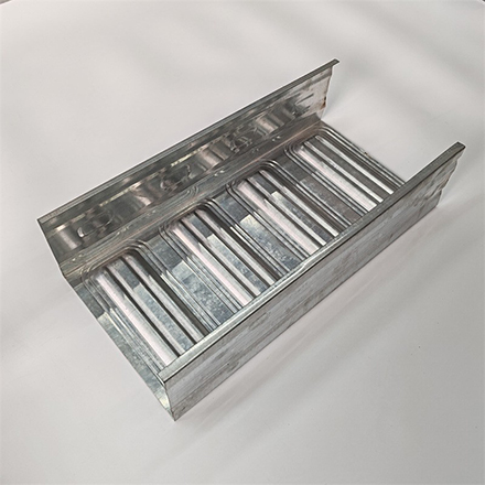 立体凹凸结构:通过冲床工艺将桥架的侧板、底板及盖板冲压成凹凸立体形态,显著增强抗弯、抗扭性能,整体刚度和承载力提升。例如,1.0mm厚度的模压桥架承载力可达460公斤,是传统1.5mm厚普通桥架的2.5倍。